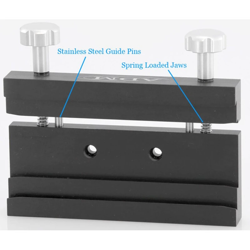 Fits iOptron MiniTower Pro Mounts. Not compatible with the MiniTower or the MiniTower AZ Pro mount. Accepts both D Series and V Series dovetail bars. Split clamp design grips the dovetail bar along the entire surface of the saddle and will not dent or scratch the dovetail bar. Features two large locking hand knobs for tool free operation, spring loaded jaws, anodized aluminum and stainless steel construction. 7″ Long, 4″ Wide, .75″ thick, Wt. 32 oz.