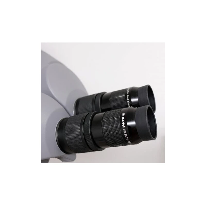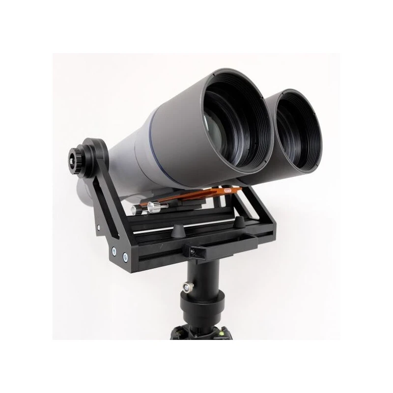 Astronomical observations with these large binoculars: you can observe large gas nebulae and galaxies with 150 mm binoculars. Larger star clusters resolve into individual stars. With binoculars, faint celestial objects appear much brighter and richer in contrast than with a conventional telescope with the same aperture. Observing objects such as the Orion Nebula, Veil Nebula or the Dumbbell Nebula with screw-on nebula filters is particularly rewarding (internal thread for dew caps: M169x1.5-6H). In addition, you can enjoy a 3D effect, e.g. when observing the Moon. The 45° viewing angle is comfortable for observing objects at medium altitudes.