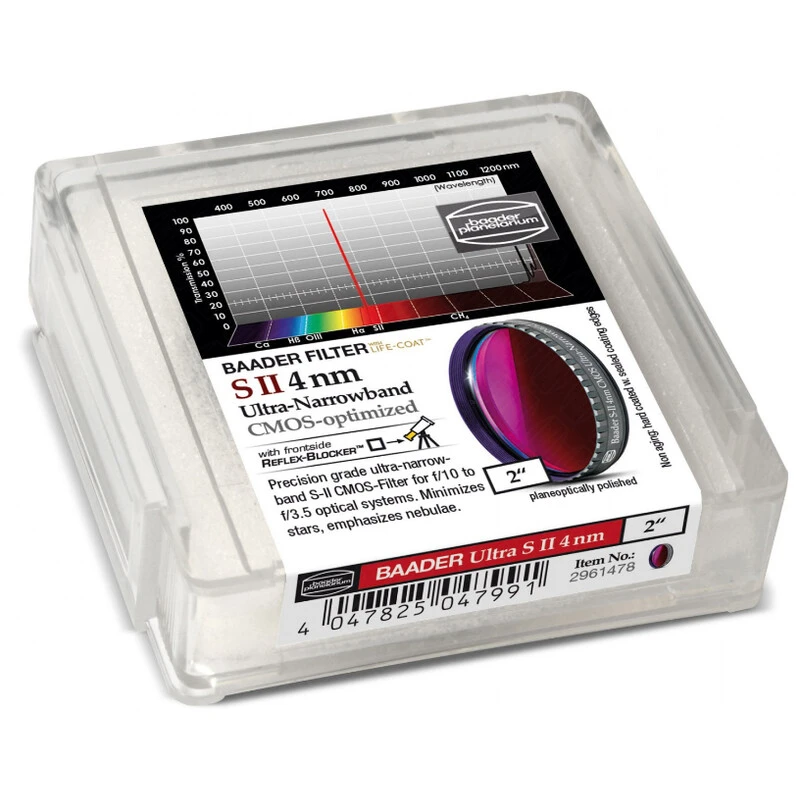 SII filter: The narrowband S-II 7nm filter passes light at 672nm wavelength with a bandpass of 3nm which is designed for nebula fotography.