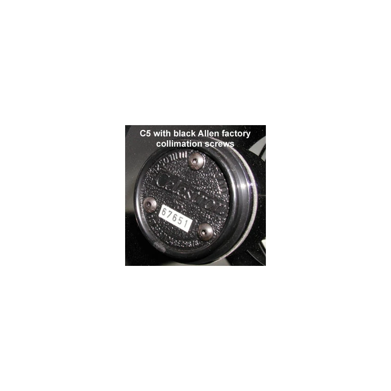 Fits: Celestron 5” f/10 SCT (C5, NexStar 5) with black Allen, silver Allen, or silver Phillips factory collimation screws (see the picture above). These screws have standard threads. Will not fit scopes with black Phillips factory collimation screws.