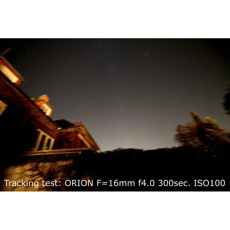 In addition, the camera only needs a setting option for long exposures and, of course, a lens. Typically achievable exposure times with good tracking accuracy are as follows: 16mm-35mm wide angle lens: 10 minutes (600 seconds) or with a 200mm telephoto lens: 5 minutes (300 seconds).