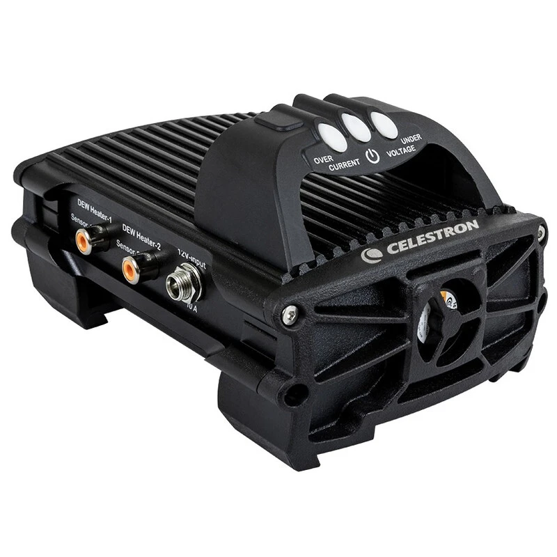 Unique design: The smart dew protection controls are enclosed in a robust metal casing. Inside, a fan protects the control unit electronics. The sensor and control unit, which contain the device’s status LEDs and environmental sensors, are located on the top of the control system. It also helps with cable management. Celestron has placed the temperature and humidity sensors here, away from the control unit and other components which generate heat. Unlike other control systems, these sensors do not require additional cables to obtain precise readings.
