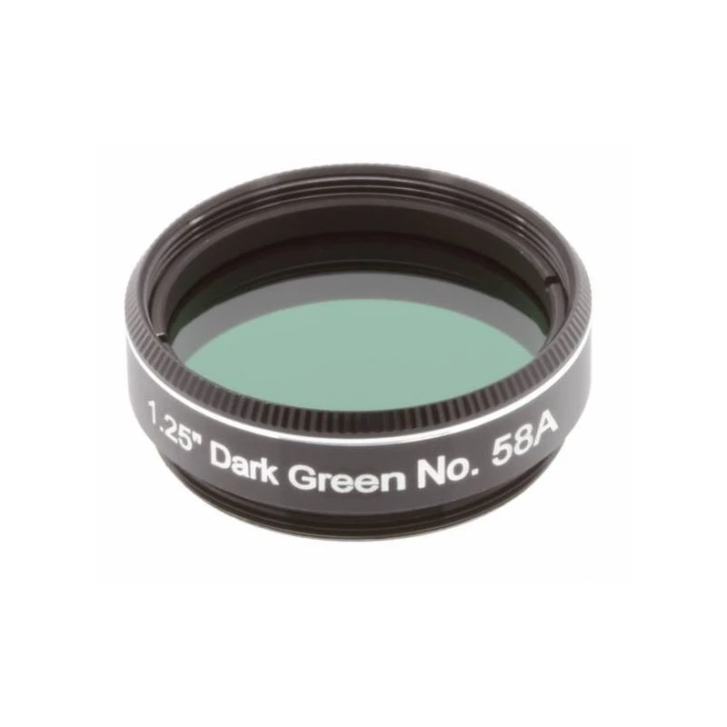 Green filters dramatically increase contrast between red and blue regions of cloud structures on the gas planets of Jupiter and Saturn. When used to view the Earth’s moon, it shows ray craters more clearly.
