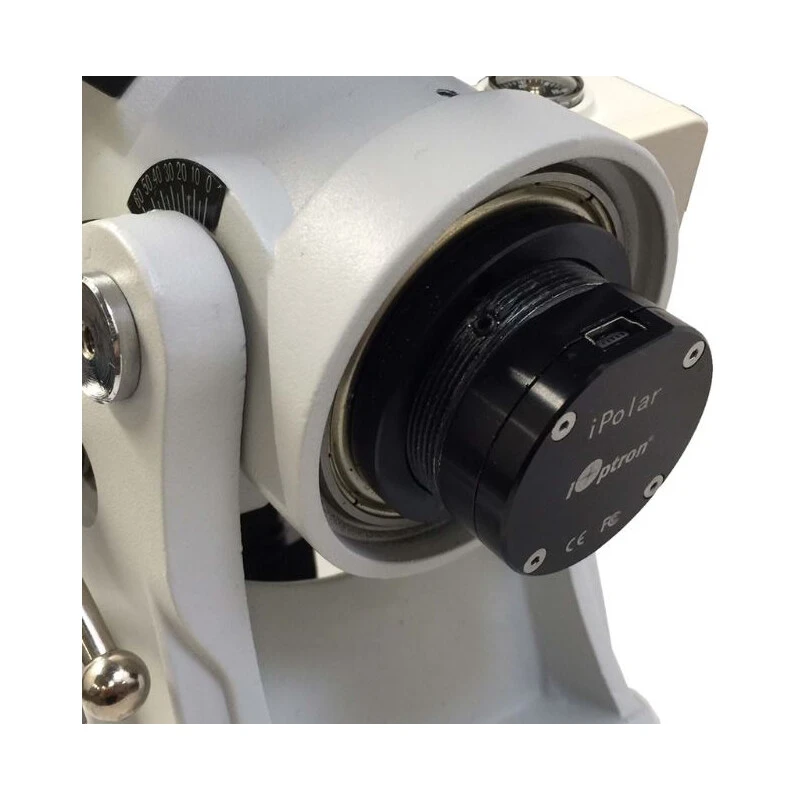 This iPolar has a rear USB port and works with the iOptron CEM26, GEM28 and SkyGuider Pro mounts.