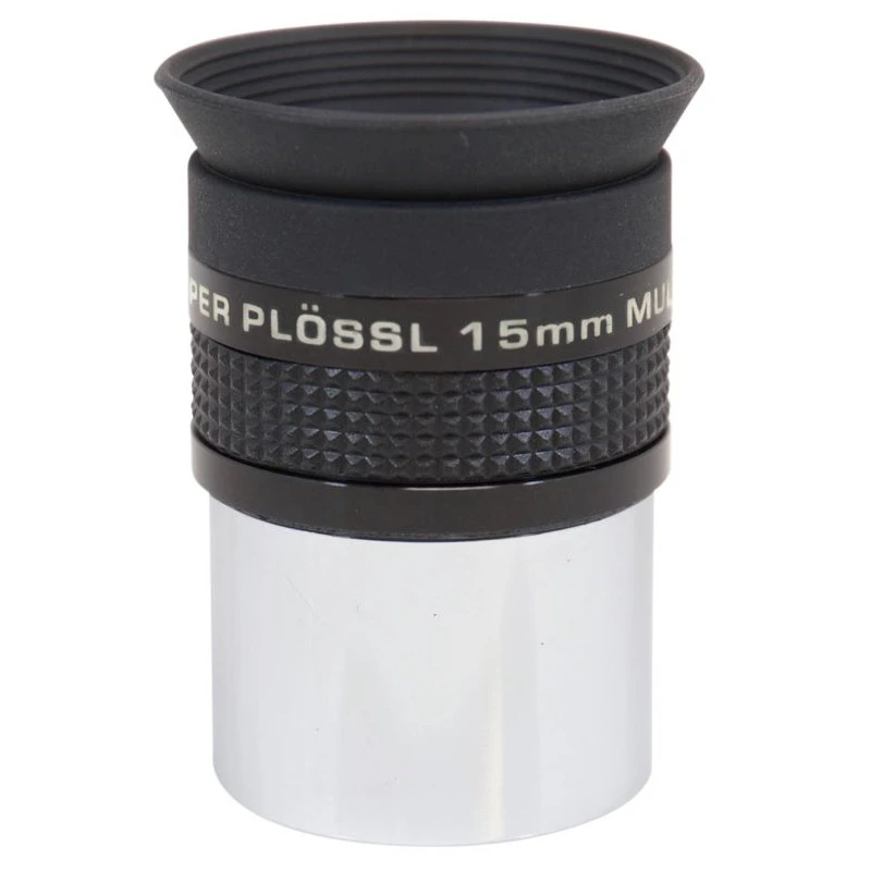 Meade 12.4mm focal length Series 4000 Super Plössl eyepiece. The Meade Series 4000 Super Plössl eyepieces offer precision engineered Meade optics, with wide fields, sharp images, and very satisfying views at very reasonable cost. Utilizing the very latest in optical glass types, the Series 4000 eyepieces represent an excellent general-purpose eyepiece. Engineered with a high quality 4-element design and offering a generous 52° apparent field of view, the eyepiece uses premium grade optical glass with multi-layer coatings and blackened lens edges for great image sharpness and contrast. Eye relief is 7mm. Features a precision made standard 1.25″ barrel and fold down rubber eyeguard for comfortable viewing as well as blocking stray light. Parafocal with other eyepieces of this series to minimize the need to refocus when switching eyepieces. Meade Series 4000 eyepieces are a terrific value and the lowest cost way to expand your range of magnifications with genuine Meade quality optics. Carries full one year Meade factory limited warranty.