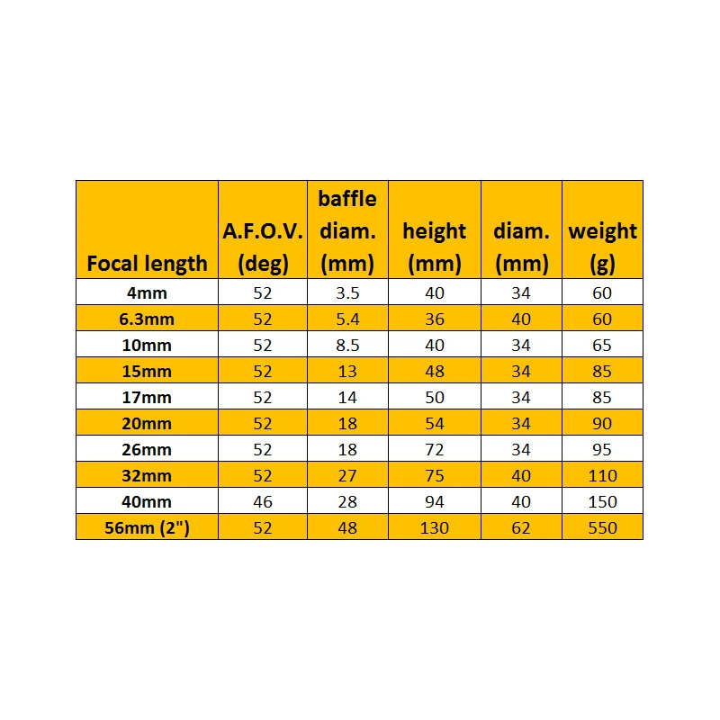 - 52 degree field of view (45° for the 40mm) – significantly wider than Kellner and standard Ploessl eyepieces