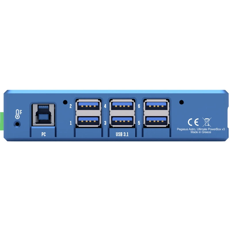 UPBv3 is a Wi-Fi and USB controlled power hub. A USB 3.1 Hub allows you to switch on/off 8 USB ports, 8 12V power outlets, 2 x Adjustable outputs (3-12V and 12-24V), 3 dew heaters, a new silent low-vibration stepper controller that can drive any stepper motor in the astronomy market as well as a power relay and an expansion port for devices that communicates with the UPBv3 Controller!