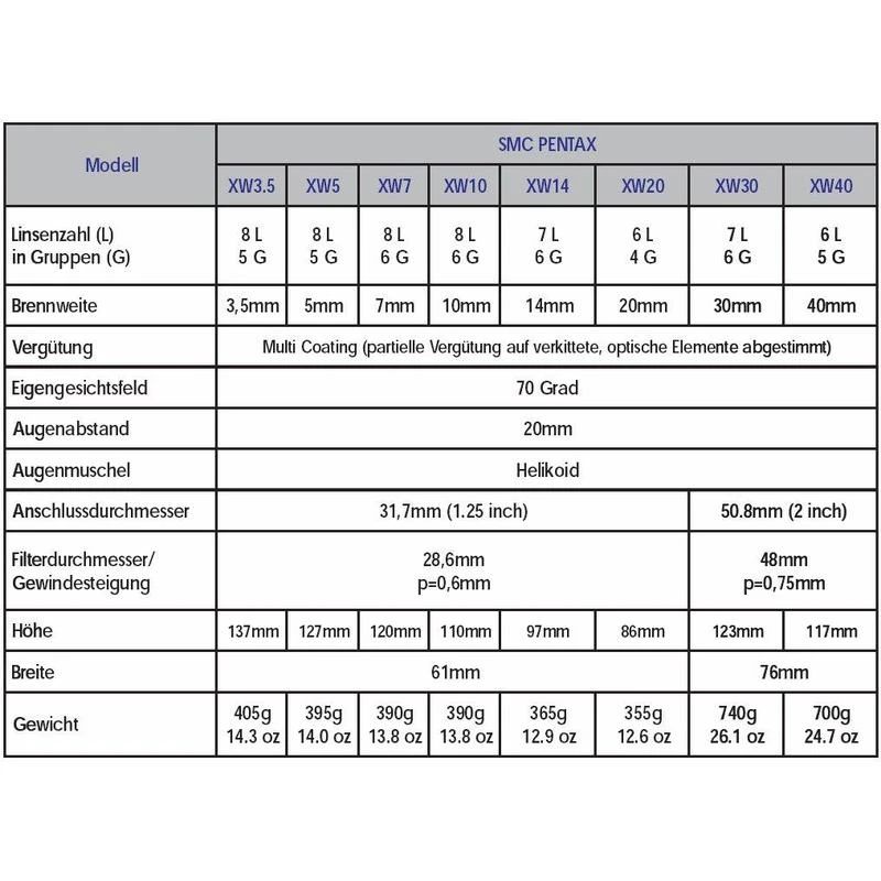 All smc PENTAX XW-series eyepieces feature an extra-wide 70-degree apparent angle of view and an extra-long 20mm eye relief to deliver an exciting, wide-perspective image. - High-Grade Optics for Exceptional Image Quality.