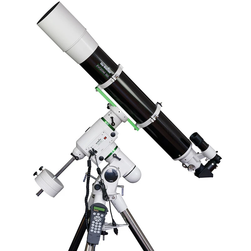 This refractor provides powerful optics and high resolution for detailed planetary observing. With its 150mm aperture, this achromatic refractor is one of the larger members of this type of telescope. With a focal ratio of f8, most chromatic aberration is already well corrected. Of course as a refractor it provides especially good contrast, which is highly positive for planetary observing. Planet observing in particular depends on being able to see individual details, such as the polar ice caps on Mars or the Great Red Spot on Jupiter. There is nothing standing in the way of a quick trip through the solar system! Many DSOs, such as the Ring Nebula or the distant globular cluster M13 are also easily visible. Collecting 460 times more light, it shows objects that are not even to be guessed at with the naked eye alone. This instrument has a 2″ focuser and includes a 1.25″ reducing adapter, allowing it to be used with both sizes of eyepiece. Using a 2″ eyepiece gives you the widest field of view. So a 2″ 40mm eyepiece with a 72° apparent field of view for example, will show you 2.8 degrees of sky. Extended DSOs fit well into this field of view. The 9×50 finder scope is mounted parallel to the telescope OTA and facilitates location of astronomical objects. Astrophotography can also be carried out with this telescope. The Moon, planets, and even most nebulae can be photographed with this system.