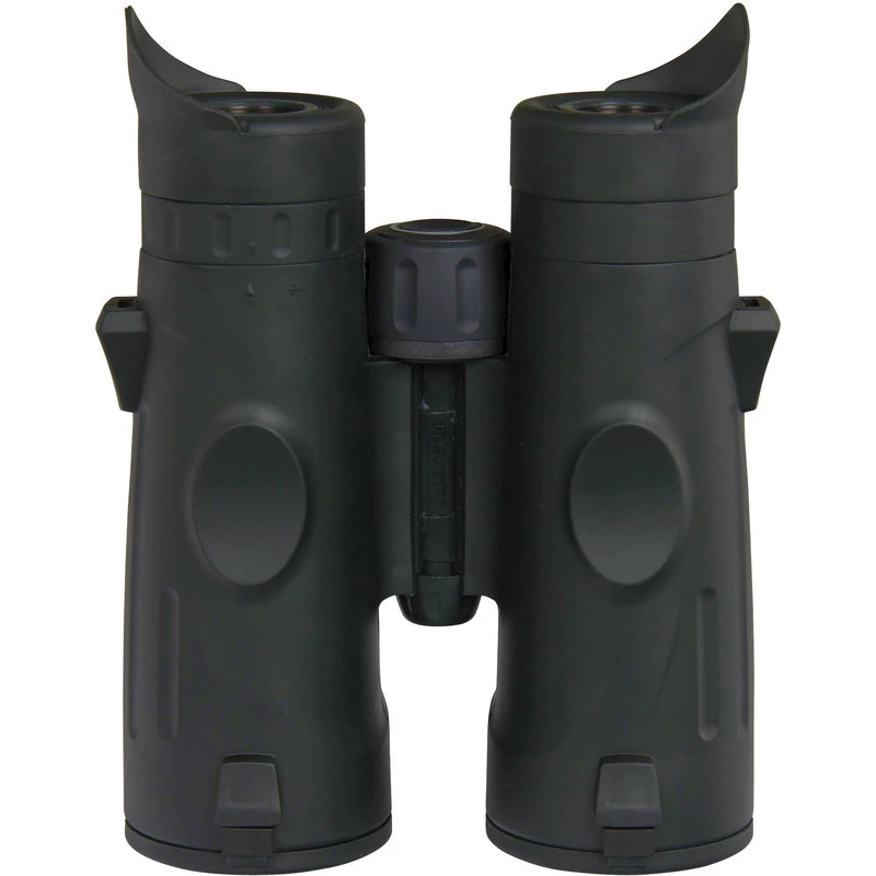 Ergonomic Design with rubber armoured protruding controls providing comfortable and silent observations with effective sound absorption. Ergonomic pliable eyecups made of soft, skin-friendly and non-ageing silicone protect against incident light and draught. Simply to be folded down for use with eyeglasses. Thumb depressions for an excellent grip, even with gloves.