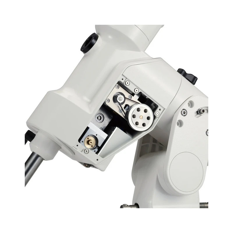 - Carrying capacity up to 22 kg: two sets of bearing are used for the right ascension axis shaft. With the newly developed EQ design the AXJ mount load capacity has been increased in order to withstand a payload of 22kg. Since the motors, worm shaft and worm gear are arranged in the lower part of the mount, it requires less counterweight than other mounts.