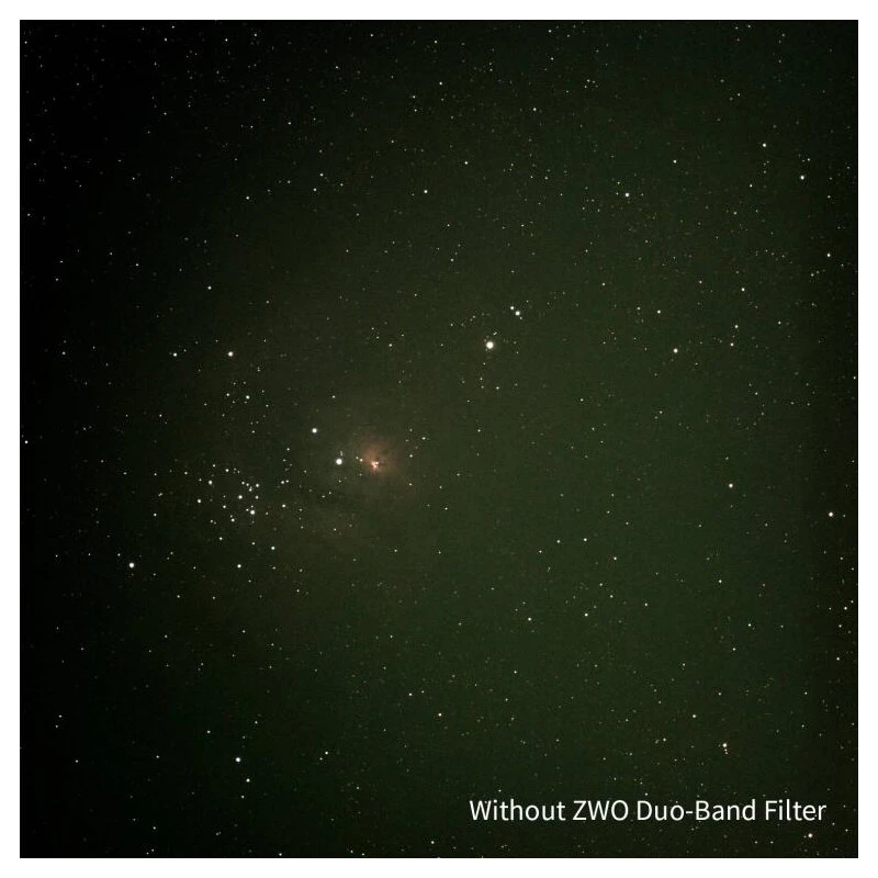 ZWO Duo-Band Filter is a dual narrowband filter primarily aimed at complementing the range of colour ASI cameras. The Duo-Band filter is aimed at the astronomer who may already own color camera and wants to image using narrowband techniques or emission objects without purchasing a mono camera, filter wheel and narrowband filter set.